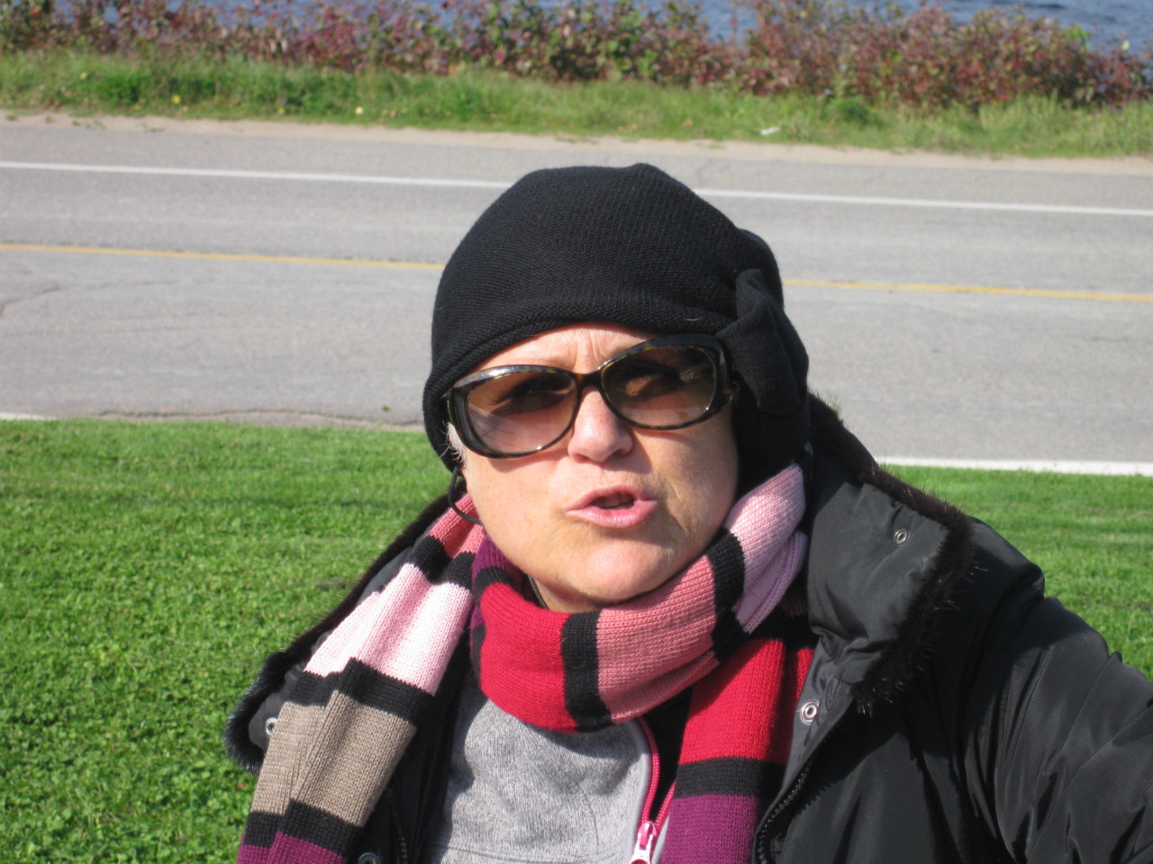 Nicole, joyeuse, "est aux petits oiseaux" en bonnet Sonia Rykiel, il faut dire que celà lui sied particulièrement!